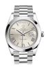 • Rolex Platinum Day-Date President 40mm Smooth Bezel Silver Quadrant Motif Bevelled Roman Dial Bracelet 228206