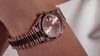 Chất liệu: vàng Everose 18K. Mặt số hồng, vạch giờ 10 viên kim cương.