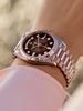 Dây đeo: President vàng Everose 18K với liên kết 3 mảnh. Khóa Crownclasp gấp ẩn.