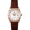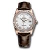 • Đồng hồ Rolex Everose Gold Day-Date Fluted Bezel White Roman Dial Brown Leather 118135 wrbr 36mm