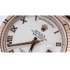 3. Đồng hồ Rolex Everose Gold Day-Date Fluted Bezel White Roman Dial Brown Leather 118135 wrbr 36mm