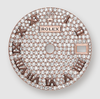 Chất liệu: Vỏ vàng Everose 18K, bộ gờ đính 44 viên kim cương. Mặt số lát 291 viên kim cương, chữ số La Mã.