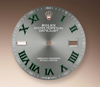 Chất liệu: Vỏ Everose Rolesor với vỏ Oystersteel, bộ gờ hình vòm Everose 18K. Mặt số đá phiến, chữ số La Mã màu xanh lá cây.