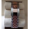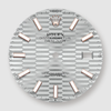 Chất liệu: Vỏ Everose Rolesor, bộ gờ trơn vàng Everose 18K. Mặt số họa tiết rãnh bạc, vạch chỉ giờ.