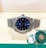 • Rolex Oyster Perpetual 34 Domed Bezel Blue Index Dial Oyster Bracelet 124200