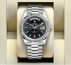 • Đồng hồ Rolex Platinum Day-Date Fluted Bezel Bright Black Index Dial President Bracelet 228236 bkip 40mm