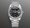 • Rolex Day-Date 40 Platinum Fluted Bezel Bright Black Index Dial Watch 228236