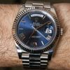 • Rolex Day-Date 40 Platinum Fluted Bezel Bright Blue Roman Dial Watch 228236