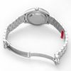 Chất liệu: Vỏ bạch kim, bộ gờ với 44 viên kim cương. Mặt số xám đậm, vạch chỉ giờ.