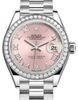 • Rolex Oyster Perpetual Datejust 28 Diamond Bezel Pink Roman Dial Platinum President Bracelet 279136RBR