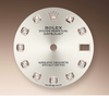 Chất liệu: Vỏ Oystersteel và vàng 18K Everose, gờ có rãnh vàng Everose 18K. Mặt số bạc, giờ kim cương.
