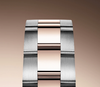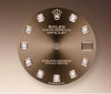 Chất liệu: Vỏ Oystersteel và vàng 18K Everose, gờ có rãnh vàng Everose 18K. Mặt số sôcôla, vạch giờ 10 viên kim cương.