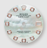 Chất liệu: Vỏ Everose Rolesor, bộ gờ hình vòm vàng Everose 18K. Mặt số khảm xà cừ trắng, vạch giờ 10 viên kim cương.