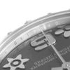 Chất liệu: Vỏ thép không gỉ, gờ hình vòm vàng trắng 18K với 24 viên kim cương. Mặt số Rhodium sẫm họa tiết hoa.