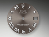 Chất liệu: Vỏ Oystersteel và vàng trắng 18K, gờ vàng trắng 18K với 24 viên kim cương. Mặt số xám đậm, chữ số La Mã.