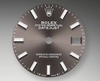 - Mặt số của chiếc Rolex Lady Datejust 28 279384RBR Dark Grey Index Dial Jubilee có hai tông màu với độ tương phản cao, hết sức rõ ràng và dễ quan sát. Phần nền mặt số màu xám được hoàn thiện bằng phương pháp chải tia với những đường xước mảnh, tạo nên khả năng bắt sáng tuyệt vời. Các chi tiết trên đó đều được làm từ vàng trắng, với chất phản quang quét ở trên.