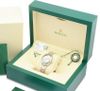 Chất liệu: Vỏ Rolesor trắng, bộ gờ rãnh vàng trắng 18K. Mặt số bạc, vạch chỉ giờ.