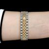 Chất liệu: Vỏ Rolesor Oystersteel và vàng 18K, gờ có rãnh vàng 18K. Mặt số bạc, chữ số La mã với 11 viên kim cương đặt trên VI.