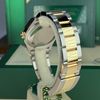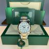 Chất liệu: Vỏ Rolesor, bộ gờ rãnh vàng 18K. Mặt số trắng khảm ngọc trai, vạch giờ 10 viên kim cương.