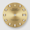 Chất liệu: Vỏ Rolesor thép 904L và vàng 18K, bộ gờ rãnh vàng 18K. Mặt số sâm panh, vạch giờ 10 viên kim cương.