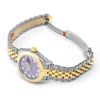 Chất liệu: Vỏ Rolesor thép 904L và vàng 18K, bộ gờ rãnh vàng 18K. Mặt số tím oải hương, vạch giờ 10 viên kim cương.