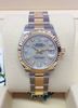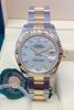Chất liệu: Vỏ Rolesor thép 904L và vàng 18K, bộ gờ rãnh vàng 18K. Mặt số khảm xà cừ trắng ngọc trai, vạch giờ 10 viên kim cương.