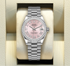 Đồng hồ Rolex White Gold Datejust Diamond Bezel Pink Roman Dial President Bracelet 278289rbr prp 31mm