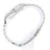 Chất liệu: Vỏ vàng trắng 18K, gờ đính 46 viên kim cương. Mặt số hồng, chữ số La Mã.