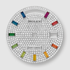Chất liệu: Vỏ vàng trắng 18K, bộ gờ 52 viên kim cương. Mặt số lát kim cương, vạch giờ 10 kim giờ sapphire bảy sắc cầu vồng được cắt hình baguette.