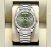 • Rolex Day-Date 18k White Gold Diamond Bezel 228349RBR Olive Green Bevelled Roman Dial President