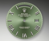 • Rolex Day-Date 40mm 228349RBR Olive Green Bevelled Roman Dial President Bracelet