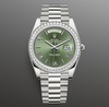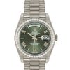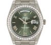 • Rolex White Gold Day-Date President 40mm Diamond Bezel Olive Green Bevelled Roman Dial Bracelet 228349RBR