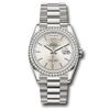 • Đồng hồ Rolex White Gold Day-Date Diamond Bezel Silver Index Dial President Bracelet 128349RBR sip 36mm