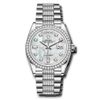 • Rolex White Gold Day-Date 36 Watch Diamond Bezel White Mother-Of-Pearl Diamond Dial Diamond President Bracelet 128349rbr mddp