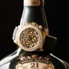 - Bên dưới mặt kính sapphire chống lóa cũng như cao cấp được sản xuất, ta có thể thấy rõ từng lớp vằn bằng vàng đã được phủ các viên kim cương li ti, để tăng sự lấp lánh và phản xạ. Phần sơn mài đen chỉ chiếm phần diện tích nhỏ nhưng vô cùng đối xứng và được xen kẽ tinh tế, hướng đến sự thuận mắt tuyệt vời. Không bị lu mờ trước hệ thống vân kim cương là ba mặt số phụ bằng vàng với những tia tròn đồng tâm tạo nên sự chuyển sắc khác biệt trên mặt số. Theo truyền thống, mặt số phụ góc 3 và 9 giờ hỗ trợ tính năng chronograph còn mặt số phụ góc 6 giờ đếm 60s độc lập.