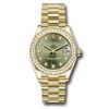 • Rolex Datejust 31mm 18kt Yellow Gold Olive Green Diamond Dial Ladies Diamond Bezel President Bracelet 278288RBR
