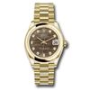 • Rolex Datejust 31mm 18kt Yellow Gold Dark Mother-of-Pearl Diamond Dial Ladies Domed Bezel President Bracelet 278248
