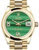• Rolex Yellow Gold Datejust 31 Watch Domed Bezel Malachite Diamond Six and Nine Dial President Bracelet 278248 madr69p