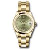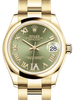 • Rolex Datejust 31mm 18kt Yellow Gold Olive Green Diamond Roman VI Dial Ladies Domed Bezel Oyster Bracelet 278248
