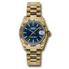 • Rolex Datejust 31mm 18kt Yellow Gold Blue Index Dial Ladies Fluted Bezel President Bracelet 178278