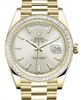 • 228398TBR sdmip Rolex Day-Date 18k Yellow Gold Silver Diagonal Motif Index Dial President 40mm
