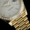 3. Đồng hồ Rolex Yellow Gold Day-Date Baguette Diamond Bezel Silver Diagonal Motif Index Dial President Bracelet 228398TBR sdmip 40mm