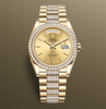 • Đồng hồ Rolex Yellow Gold Day-Date Diamond Bezel Champagne Index Dial Diamond President Bracelet 128348rbr chidp 36mm