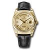 • Đồng hồ Rolex Yellow Gold Day-Date Fluted Bezel Champagne Jubilee Diamond Dial Black Leather 118138 chjdl 36mm