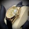 3. Đồng hồ Rolex Yellow Gold Day-Date Fluted Bezel Champagne Jubilee Diamond Dial Black Leather 118138 chjdl 36mm