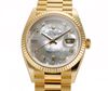 • Rolex President Day-Date 18k Yellow Gold Mother-of-Pearl Diamond Dial Fluted Bezel Watch 128238