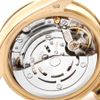 Chất liệu: Vỏ vàng 18K, gờ đính 42 viên kim cương. Mặt số xanh, vạch giờ 10 viên kim cương.