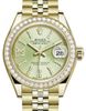 • Rolex Yellow Gold Lady-Datejust 279138RBR Linden Green Strip Diamond Index Dial Diamond Bezel Jubilee Bracelet