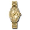 • Rolex Yellow Gold Lady-Datejust 26 Watch Fluted Bezel Champagne Diamond Dial President Bracelet 179238 chdp