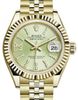 • Rolex Yellow Gold Lady-Datejust 279178 Linden Green Strip Diamond Index Dial Fluted Bezel Jubilee Bracelet